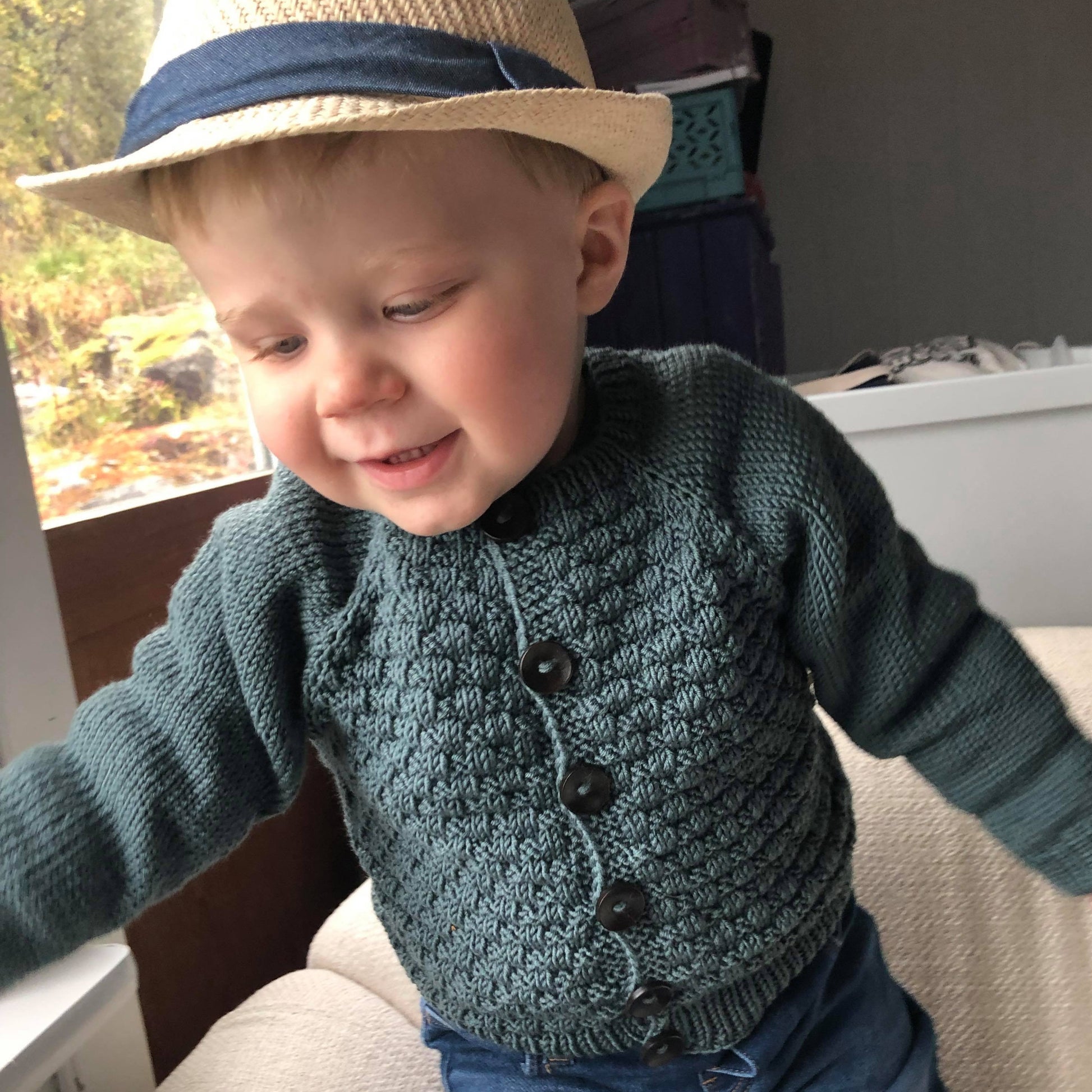 Imrejakke er en romslig og myk jakke som strikkes kjapt på pinne 4. Den strikkes ovenfra og ned med mønster over forstykket. Resten av jakken strikkes i glattstrikk.
